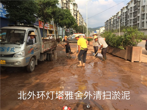 二是上下聯(lián)動,奮力除險,全力保障群眾安全。由于雨量過大,康藏路消防隊門口主干道積水達70厘米深,道路中斷,公司搶險分隊組織隊員冒雨對排水口進行疏通,以最快速度恢復道路通行;北外環(huán)青鼻山隧道外大量塌方,搶險分隊立即在此處設置警示標識,并調(diào)配裝載機對塌方進行清理,確保道路恢復正常通行。