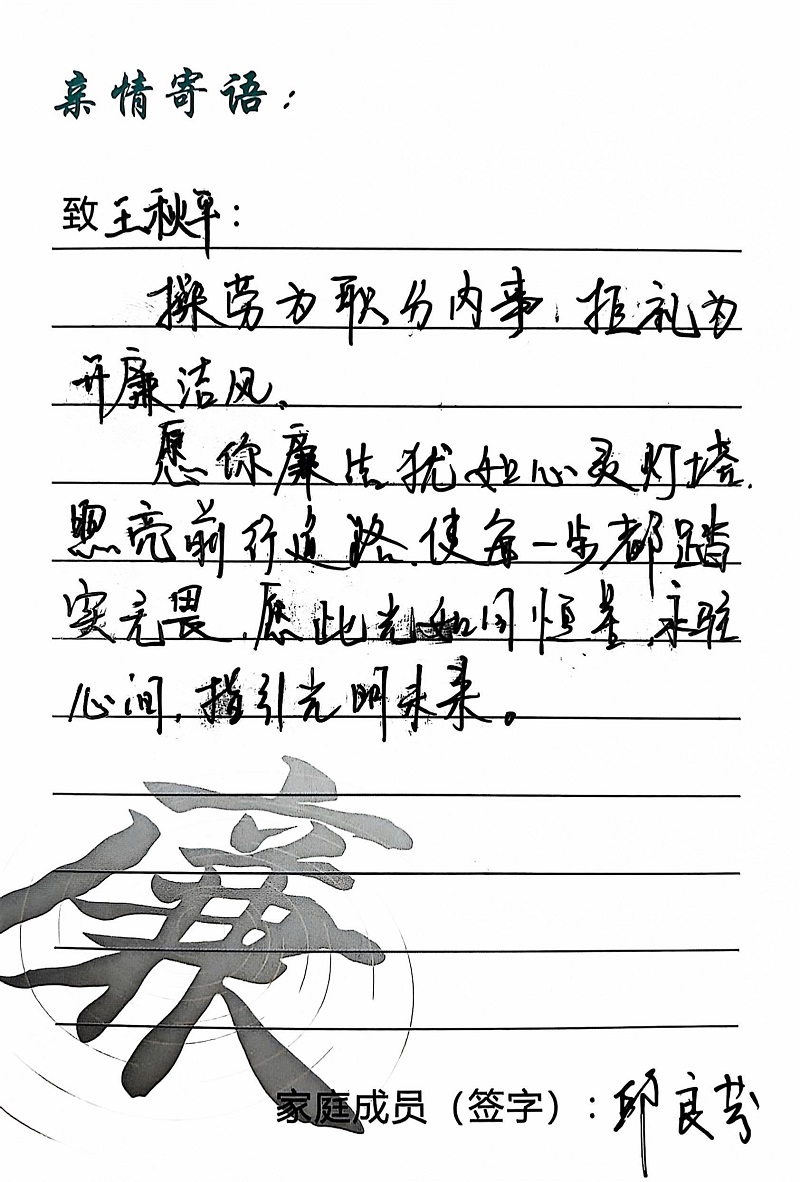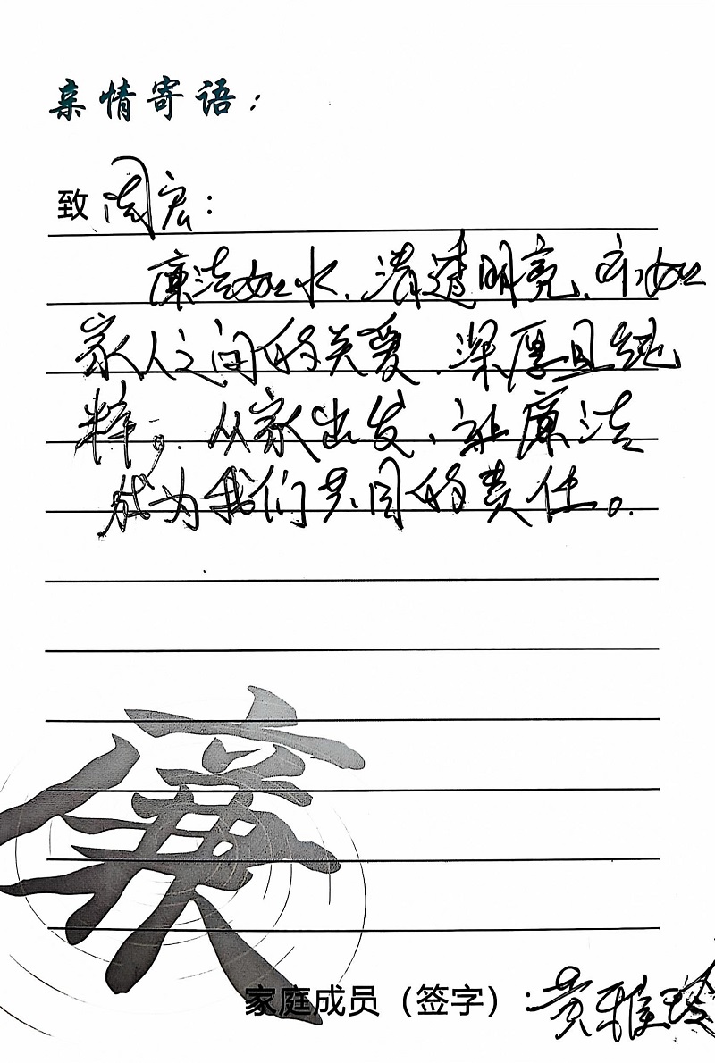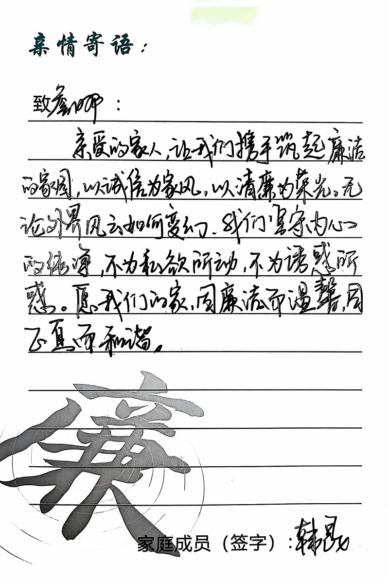 為深入學習黨的二十大精神,貫徹落實習近平總書記關于注重家庭家教家風建設的重要論述,營造公司崇廉、尚廉、踐廉、助廉的良好氛圍,城投公司組織開展了“家滿清風·廉潤城投”廉潔文化活動;顒娱_展以來,共征集廉政寄語210余條。經(jīng)各部門、子公司推薦,城投公司相關部門審核,評選出優(yōu)秀廉潔寄語43條,F(xiàn)將優(yōu)秀廉政寄語分批次進行展播,快來一起欣賞吧!