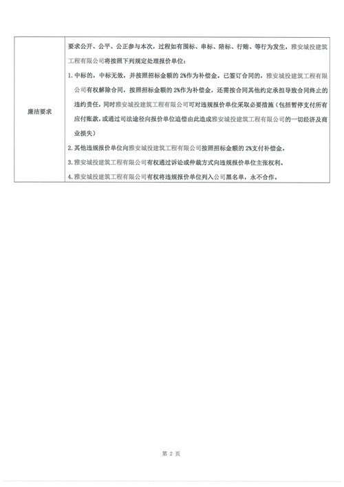 雅安市綜合訓練基地建設工程——工程檢測詢價函(第二次)