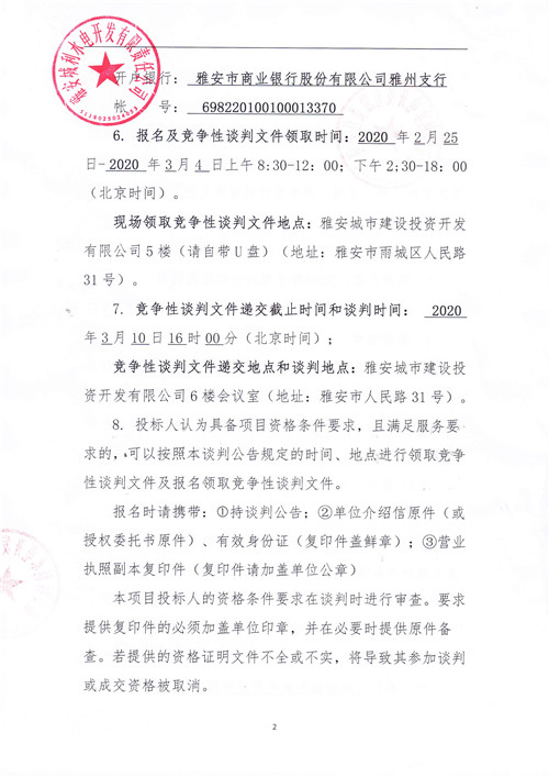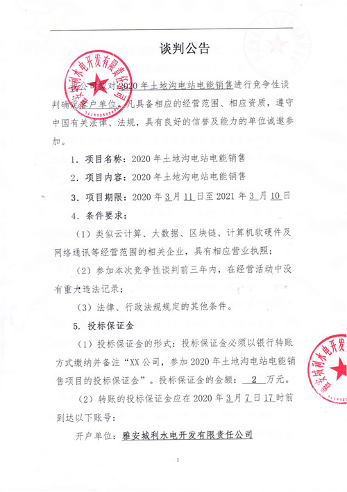 2020年土地溝電站電能銷售競爭性談判公告