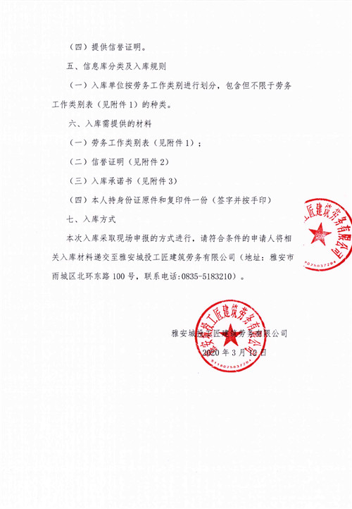 關(guān)于征集勞務(wù)施工人員入庫的公告