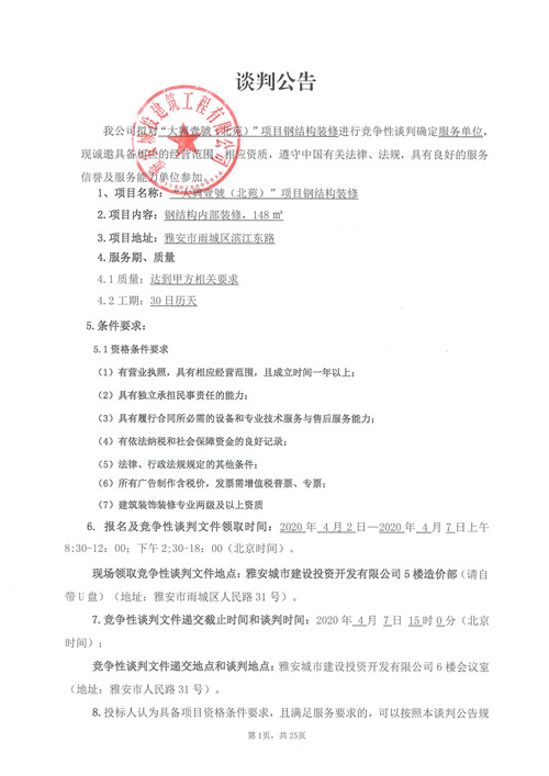 城投建工“大興壹號(北苑)”項目鋼結構裝修競爭性談判公告