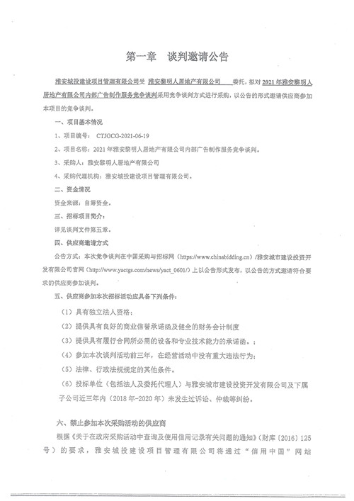 黎明人居公司內(nèi)部廣告制作服務(wù)競(jìng)爭(zhēng)性談判公告