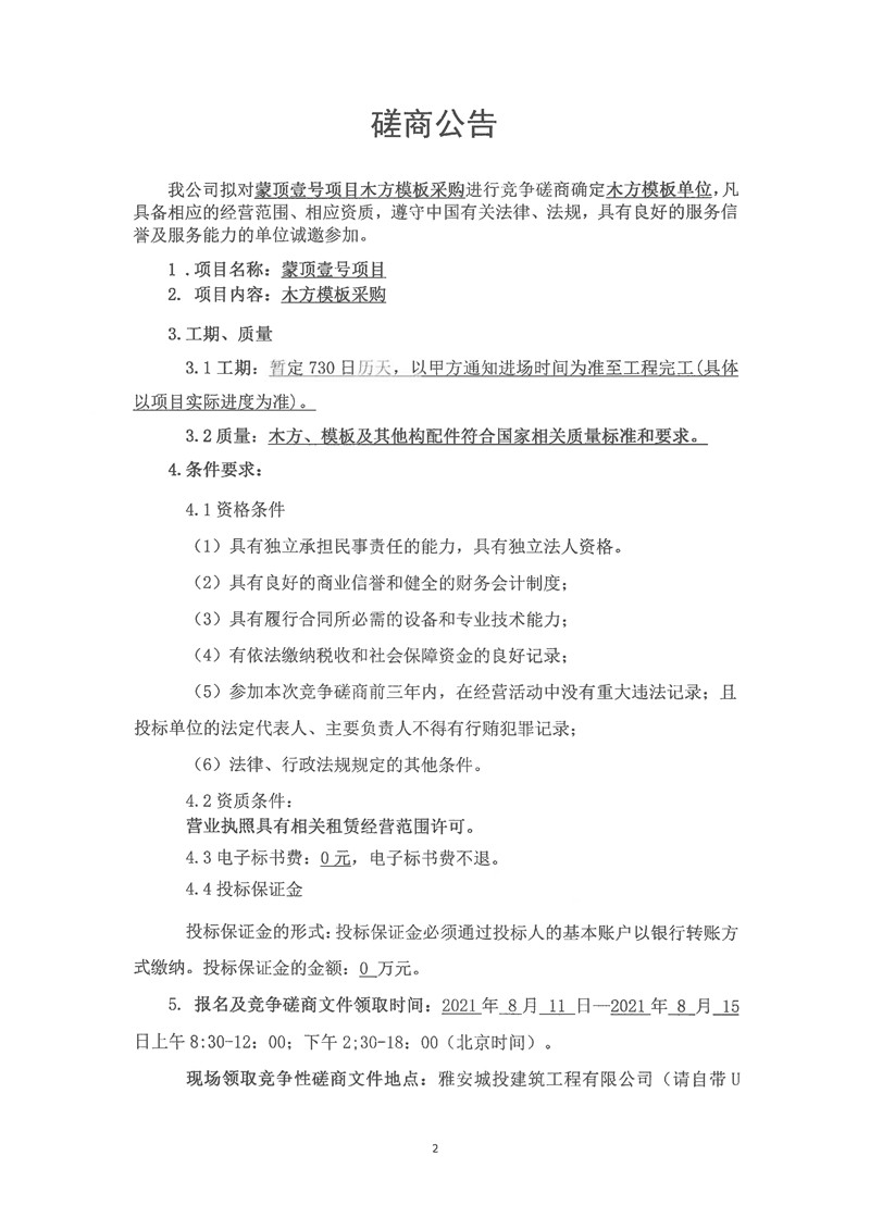 城投建工公司蒙頂壹號(hào)項(xiàng)目木方模板采購(gòu)競(jìng)爭(zhēng)磋商公告