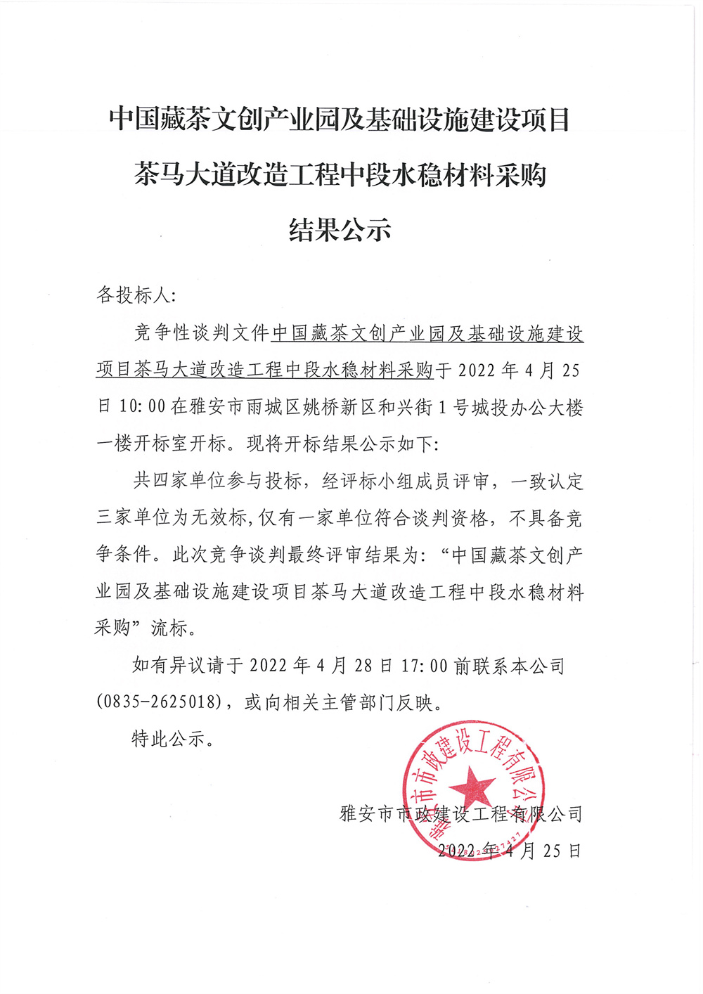 中國藏茶文創(chuàng)產(chǎn)業(yè)園及基礎(chǔ)設(shè)施建設(shè)項(xiàng)目茶馬大道改造工程中段水穩(wěn)材料采購競(jìng)爭(zhēng)性談判結(jié)果公示