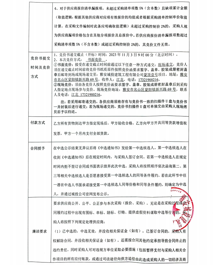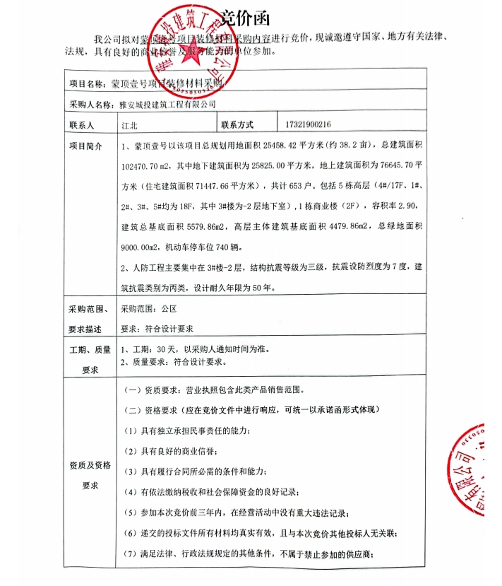 蒙頂壹號項(xiàng)目裝修材料采購競價(jià)公告