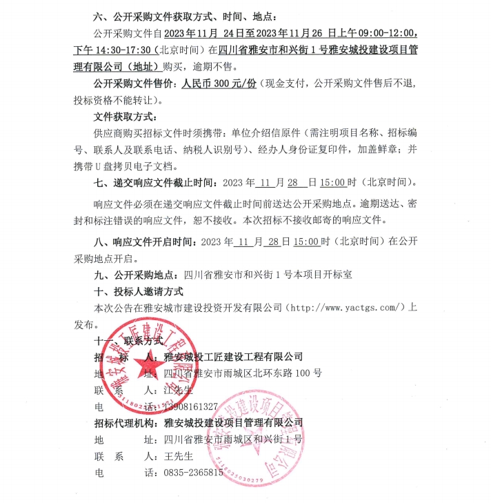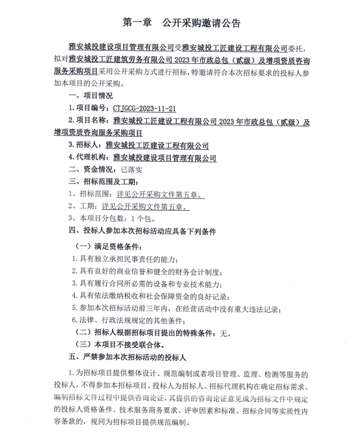 雅安城投工匠建設(shè)工程有限公司2023年市政總包(貳級(jí))及增項(xiàng)資質(zhì)咨詢(xún)服務(wù)采購(gòu)項(xiàng)目公開(kāi)采購(gòu)邀請(qǐng)公告