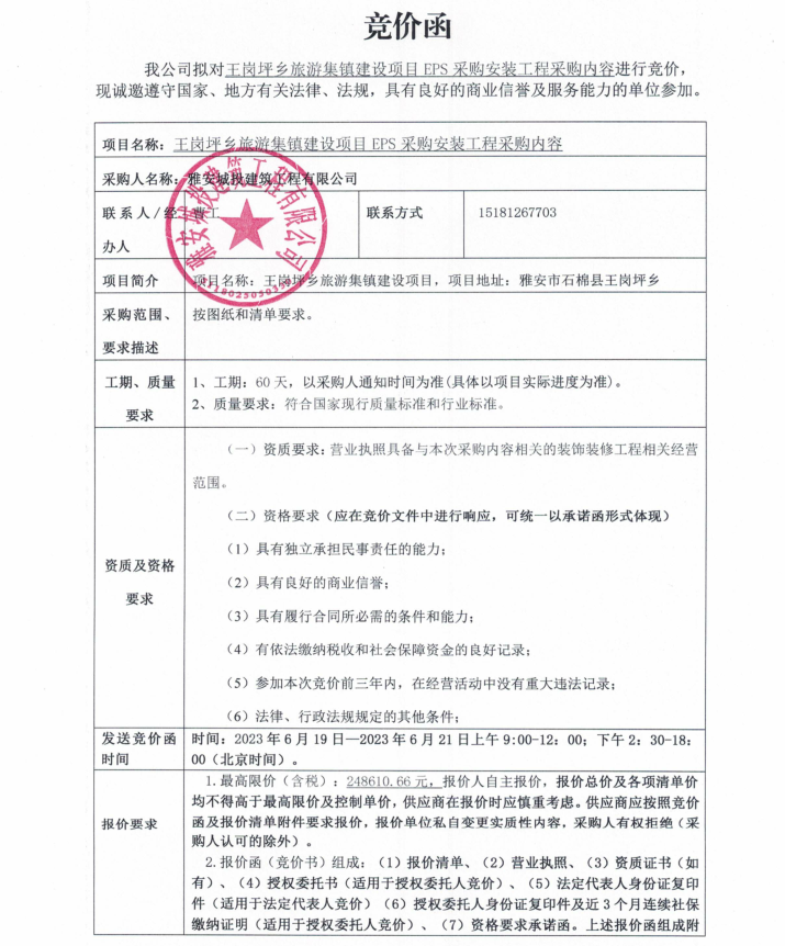 王崗坪鄉(xiāng)旅游集鎮(zhèn)建設(shè)項(xiàng)目EPS采購安裝工程采購內(nèi)容競價(jià)公告