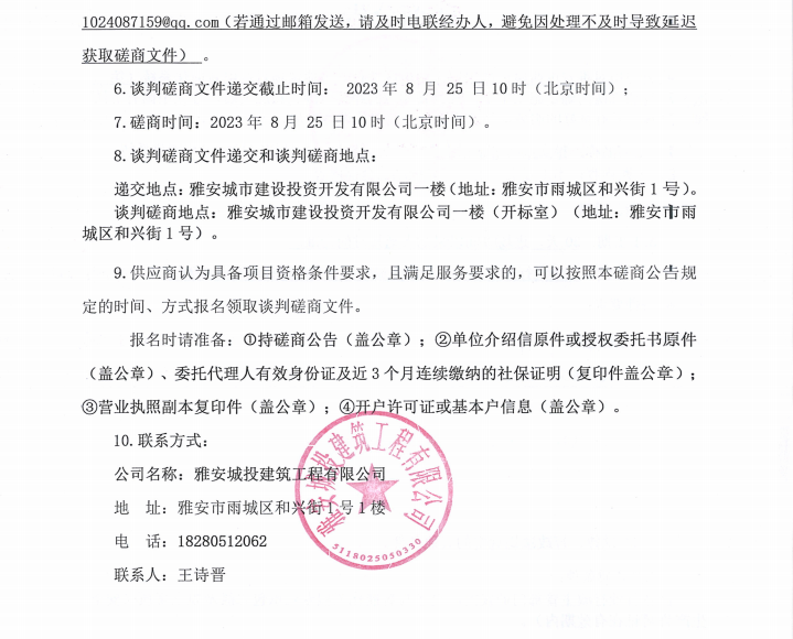 雅安市西康記憶生態(tài)文旅街區(qū)項(xiàng)目一號(hào)地塊項(xiàng)目弱電智能化系統(tǒng)(第二次)談判磋商公告