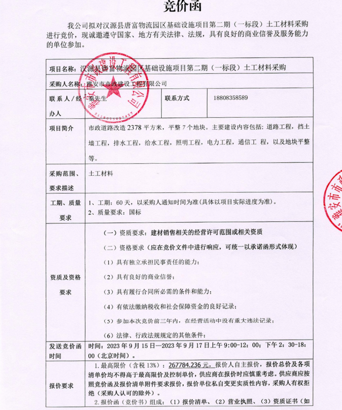 漢源縣唐富物流園區(qū)基礎設施項目第二期(一標段)土工材料采購競價公告