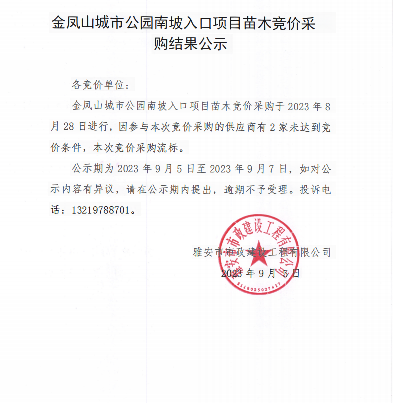金鳳山城市公園南坡入口項(xiàng)目苗木采購(gòu)競(jìng)價(jià)采購(gòu)結(jié)果公示