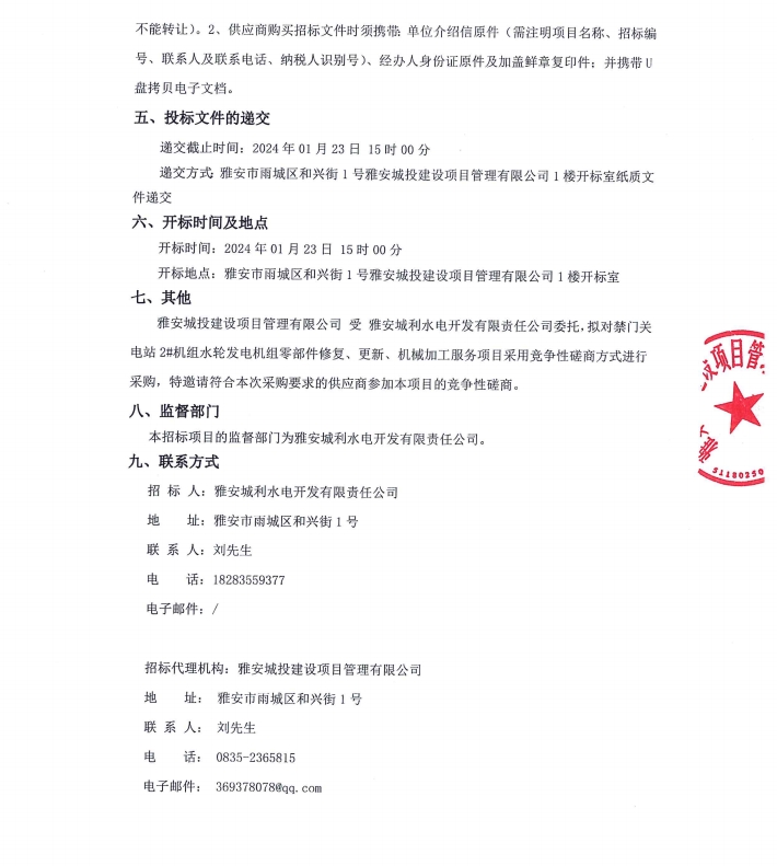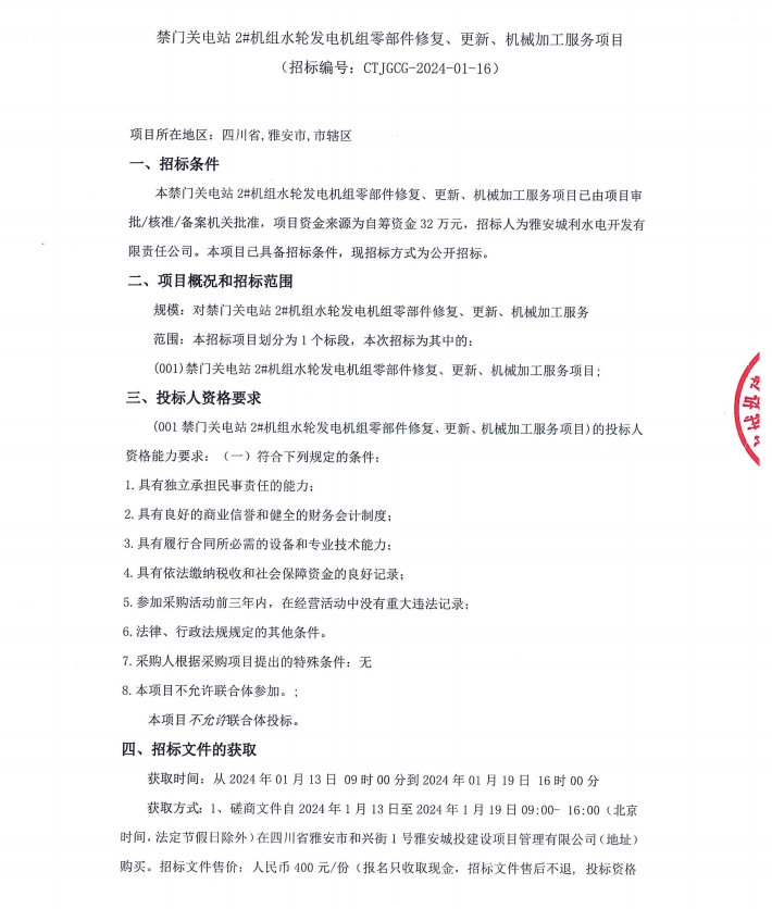 禁門關(guān)電站2#機(jī)組水輪發(fā)電機(jī)組零部件修復(fù)、更新、機(jī)械加工服務(wù)項(xiàng)目公告