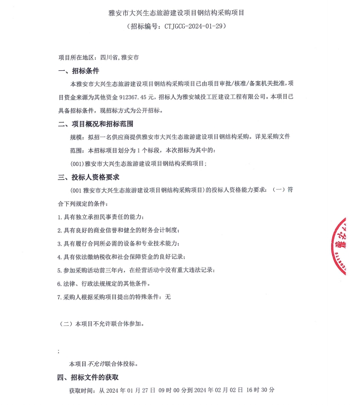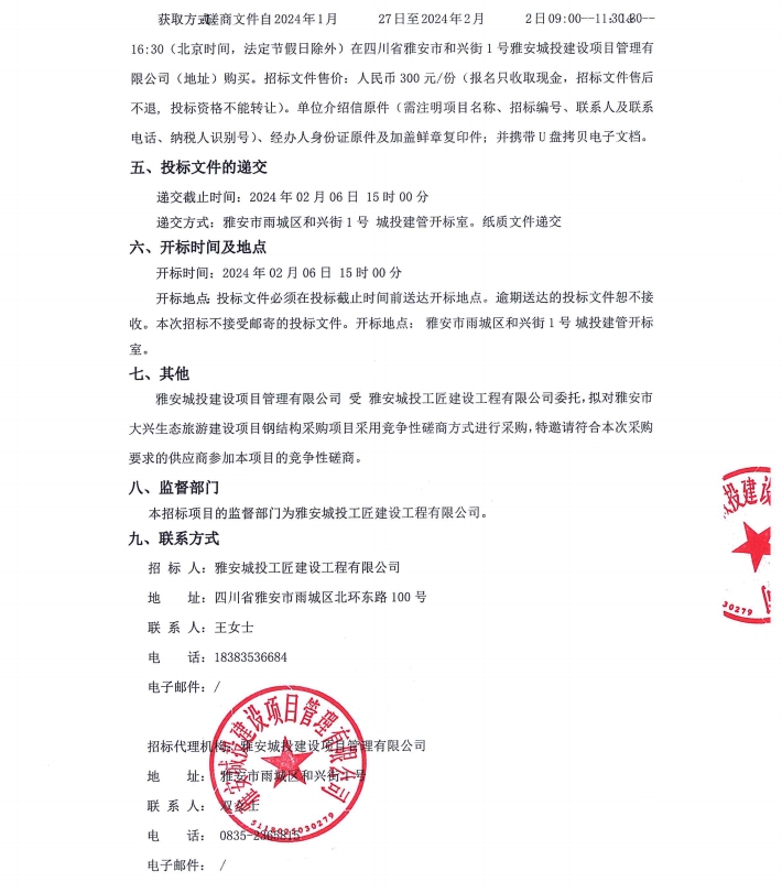 雅安市大興生態(tài)旅游建設(shè)項(xiàng)目鋼結(jié)構(gòu)采購項(xiàng)目公告