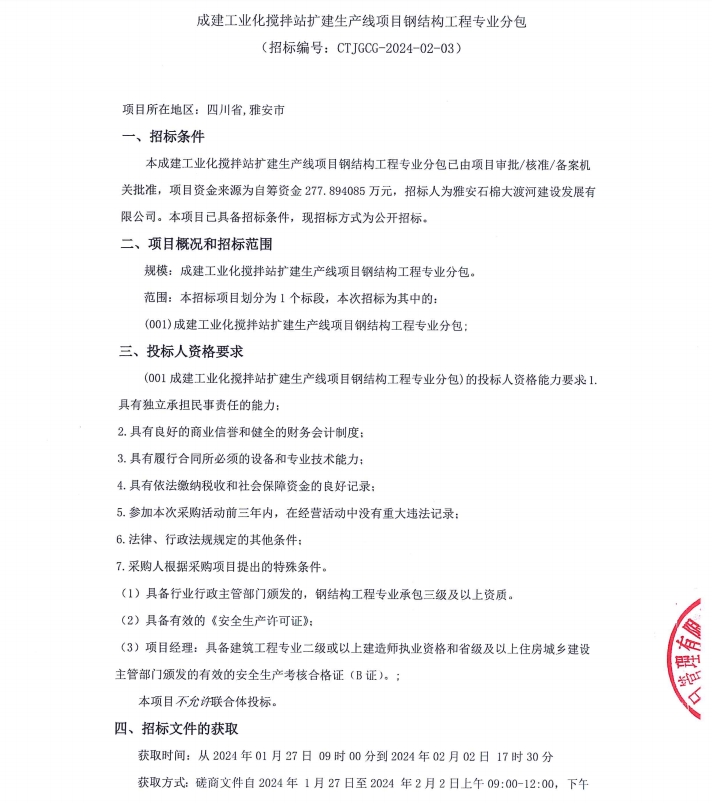 成建工業(yè)化攪拌站擴(kuò)建生產(chǎn)線項(xiàng)目鋼結(jié)構(gòu)工程專業(yè)分包公告