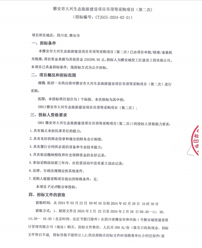 雅安市大興生態(tài)旅游建設(shè)項目吊頂?shù)炔少忢椖浚ǖ诙危┕?/h1>