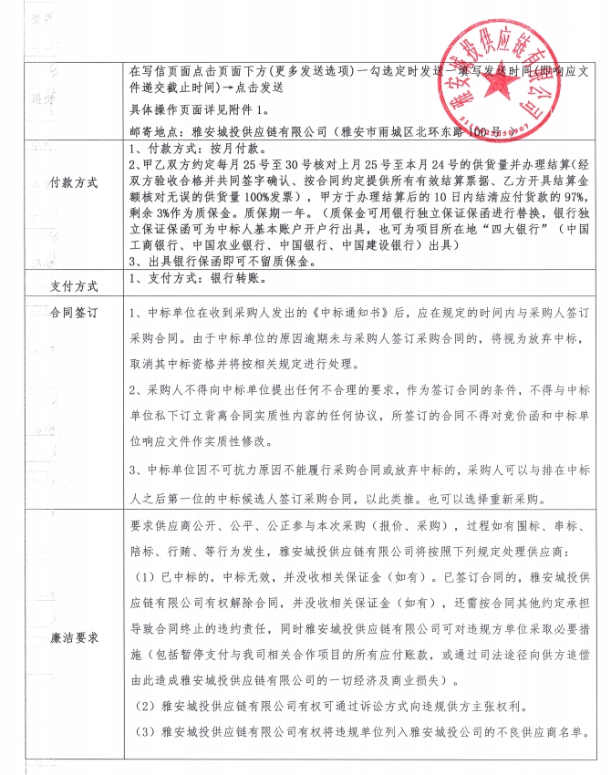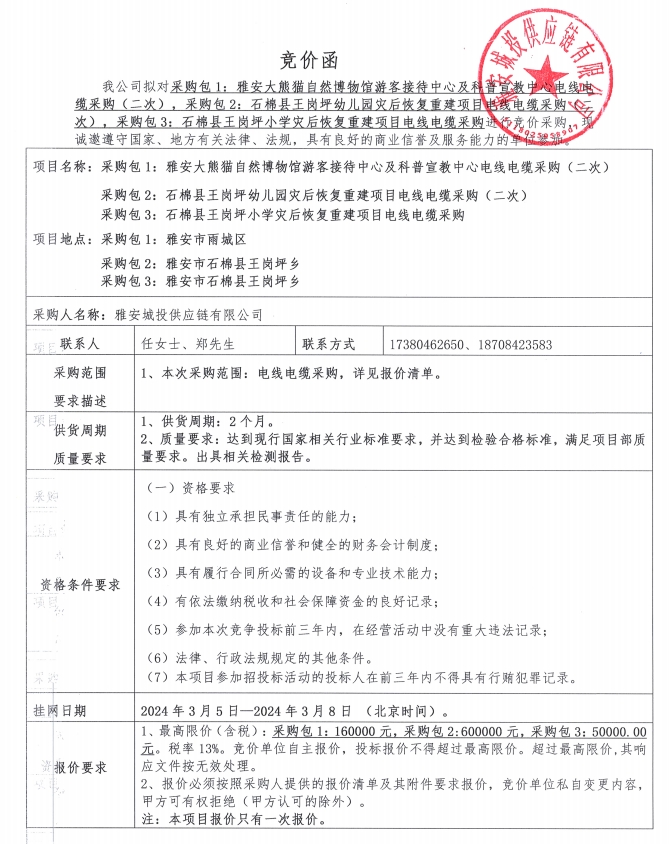 雅安城投供應(yīng)鏈有限公司電線電纜采購競(jìng)價(jià)公告