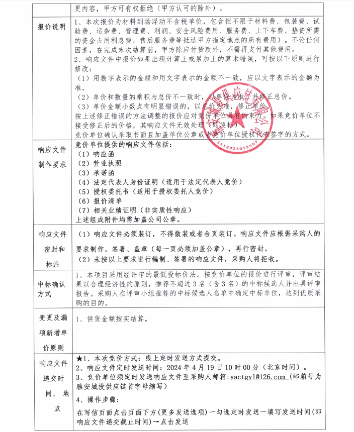 雅安城投供應(yīng)鏈有限公司鋁扣板采購(gòu)競(jìng)價(jià)公告