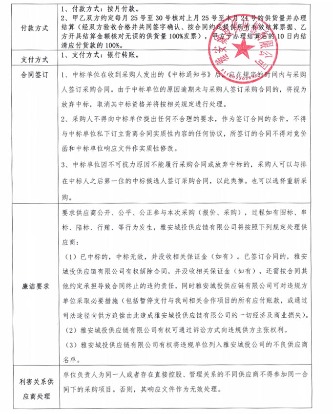 雅安城投供應鏈有限公司花崗石采購競價公告
