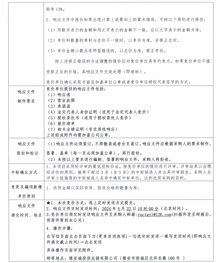 響應(yīng)文件格式-雅安城投供應(yīng)鏈有限公司井蓋采購