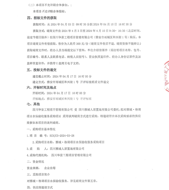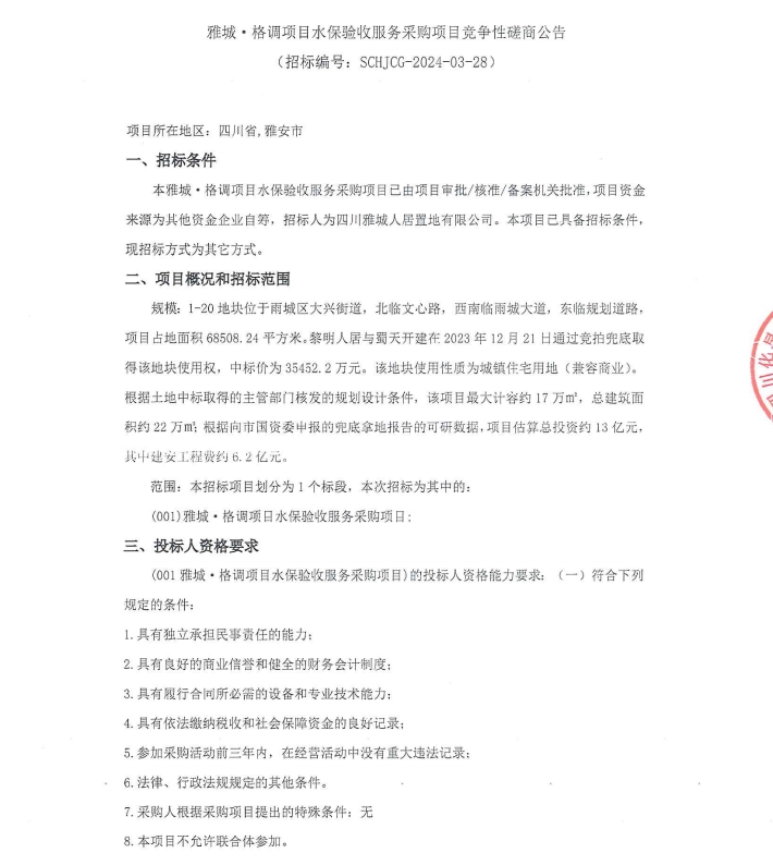 雅城·格調(diào)項目水保驗收服務(wù)采購項目競爭性磋商公告