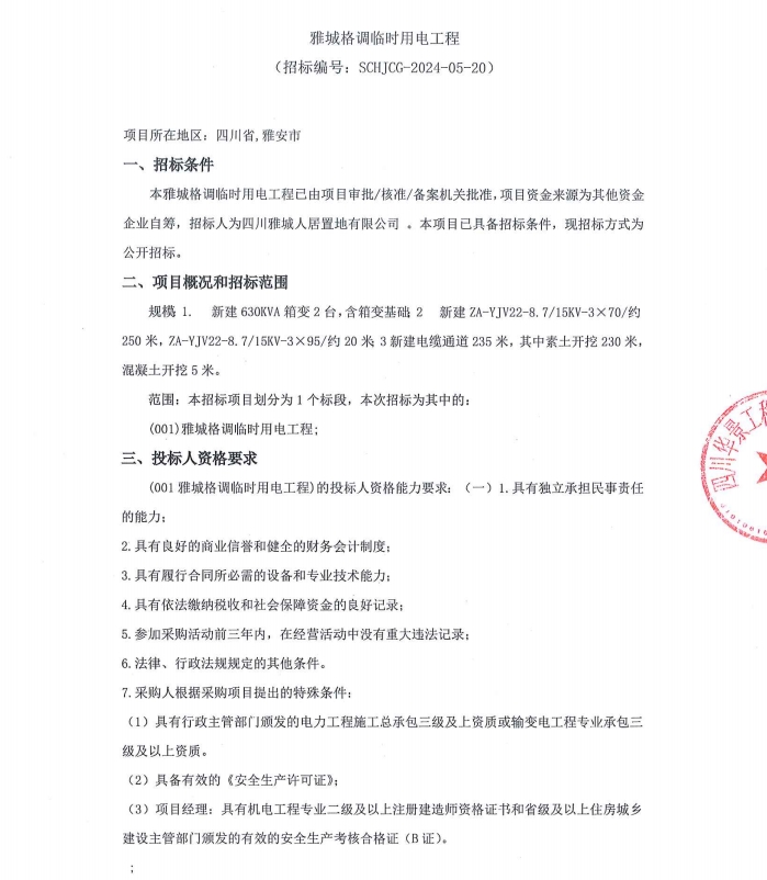 雅城格調(diào)臨時(shí)用電工程公告