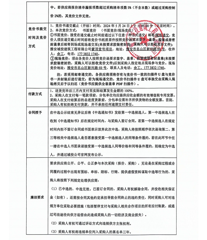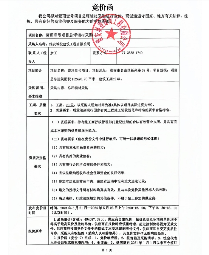 蒙頂壹號項(xiàng)目總坪輔材采購競價(jià)公告