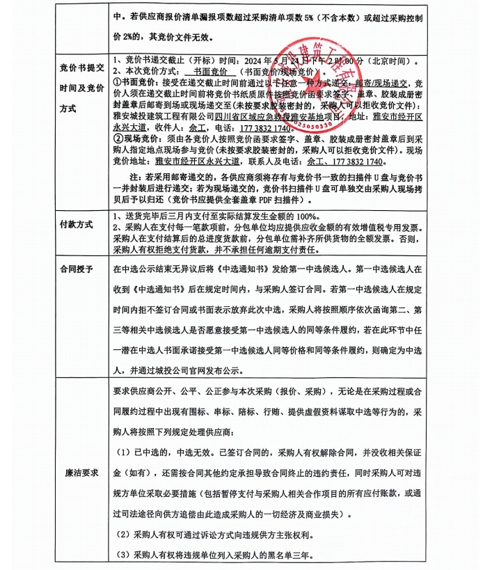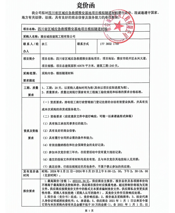 四川省區(qū)域應(yīng)急救援雅安基地項(xiàng)目模擬隧道材料競價(jià)公告