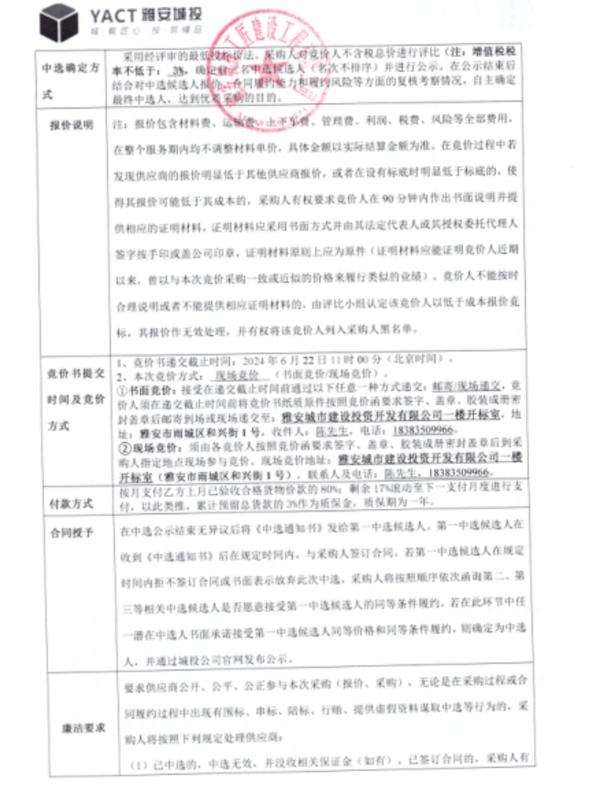 雅安市大興生態(tài)旅游建設(shè)項目洗凈細白沙材料采購(二次)競價公告