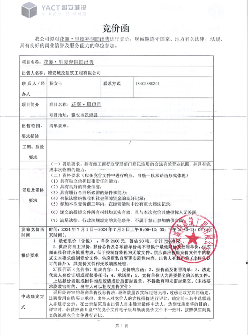 花襄·里廢棄鋼筋出售競價(jià)公告