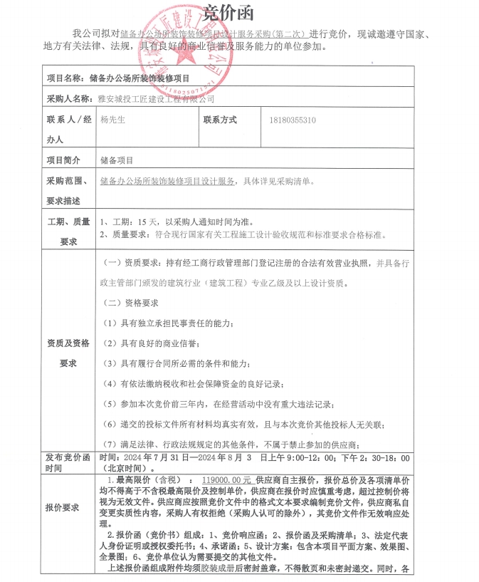 儲備辦公場所裝飾裝修項目設(shè)計服務(wù)采購(第二次)競價公告