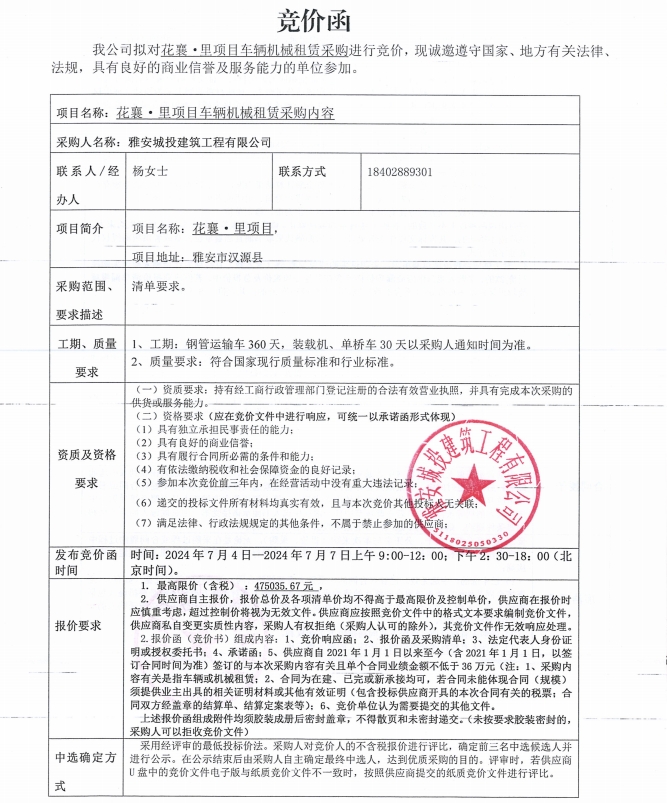 花襄·里項(xiàng)目車輛機(jī)械租賃采購競(jìng)價(jià)公告