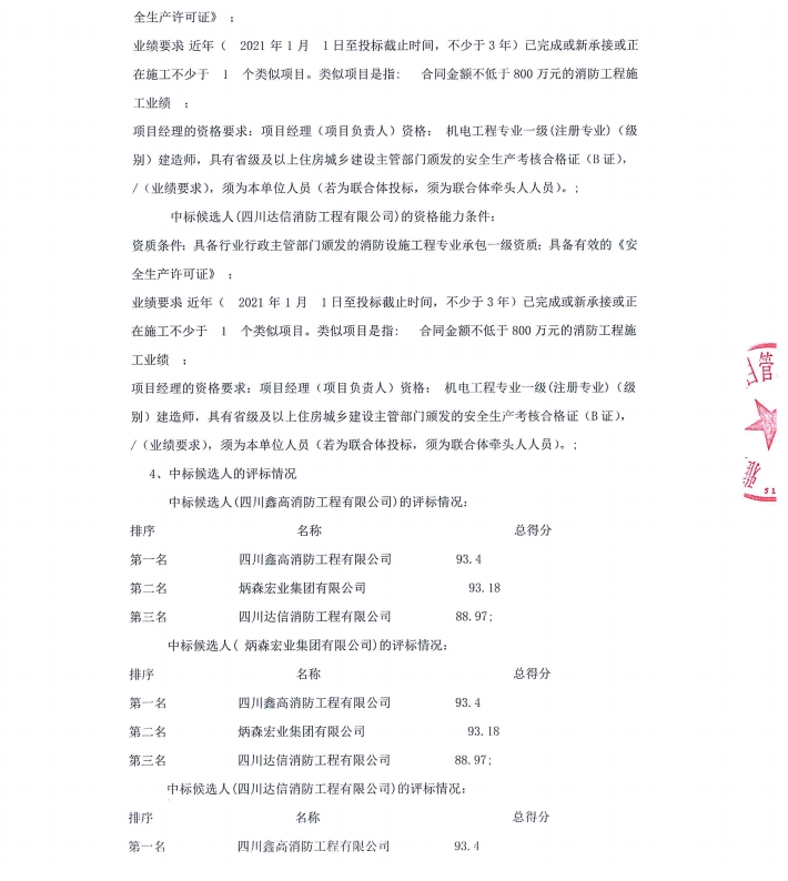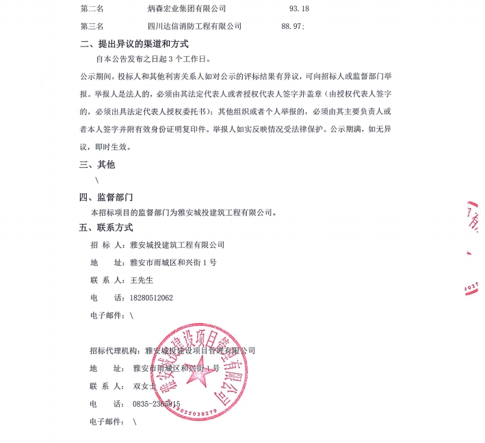 雅州壹號院消防及防排煙工程中標候選人公示