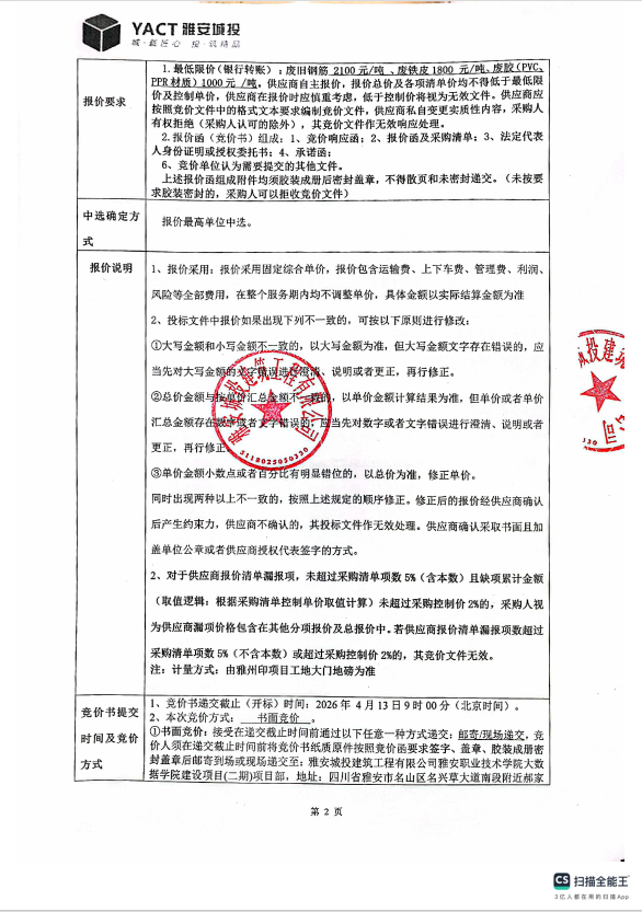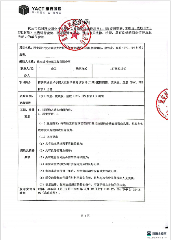 雅安職業(yè)技術(shù)學(xué)院大數(shù)據(jù)學(xué)院建設(shè)項(xiàng)目(二期)廢舊鋼筋、廢鐵皮、廢膠(PVC、PPR材質(zhì))出售